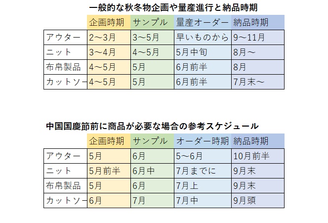 秋冬ものの量産時期の