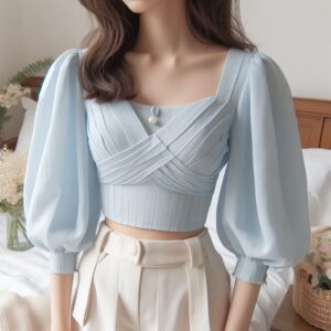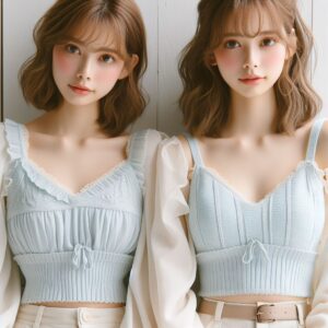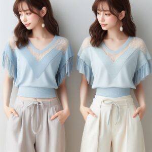 ペールブルーのトップス