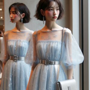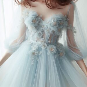 ペールブルーのドレスは、透明感や